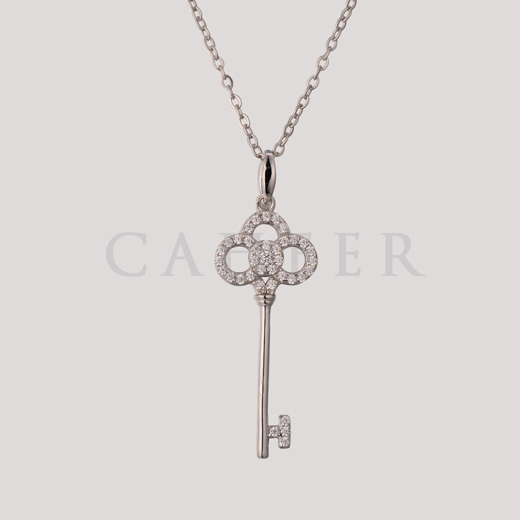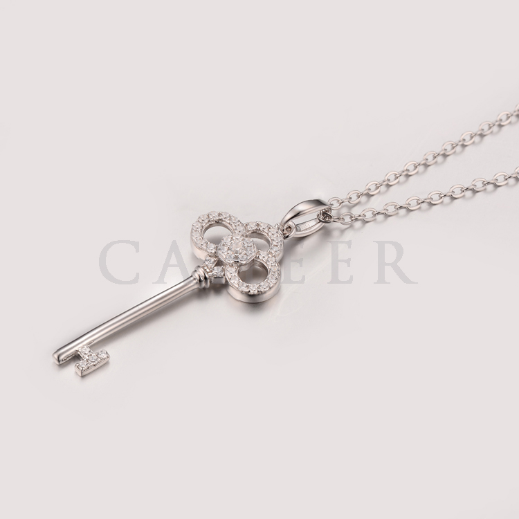 CP1507048 电镀白金钥匙气质银吊坠项链