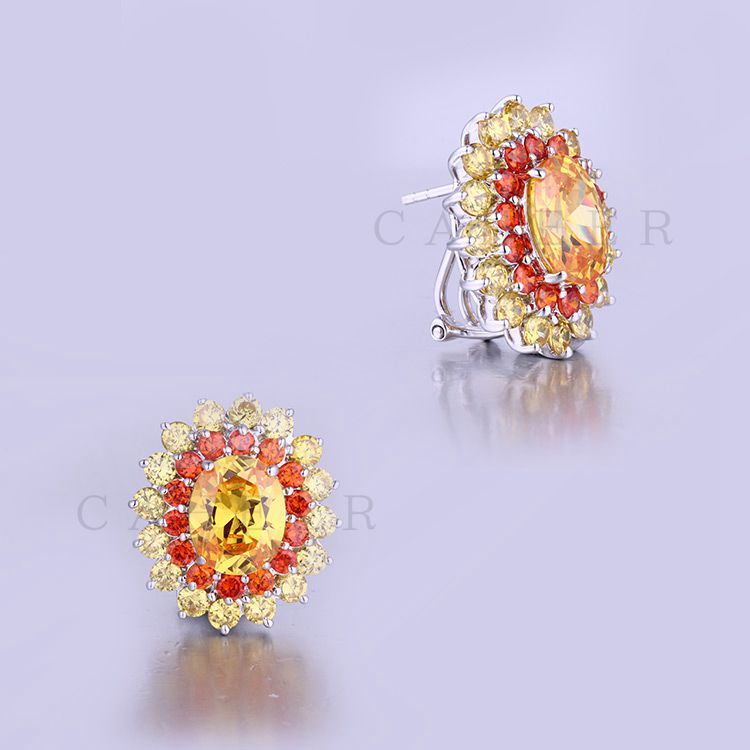 Ladies Earrings Latest Design Earrings Women Color Gem Silver Studs K0022E CAHEER Jewellery